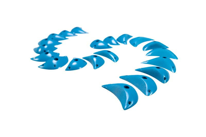 The Fades are made for advanced climbing, with dual-tex used to encourage thoughtful use and precision. This set includes 20 low profile grips that vary between very slopey to moderately slopey - great for low angle climbs and difficult, technical routes.