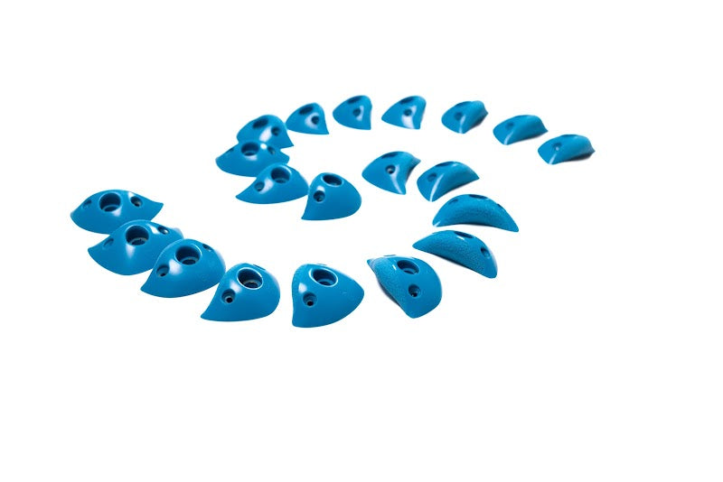 The Glazed Jugs are made for every ability level, with dual-tex used to encourage thoughtful use and precise movement. This set includes 20 positive but small, dual-tex feet - which can also make for some excellent, small, rounded crimps. The Glazed Jugs are great for any wall angle and any grade level.
